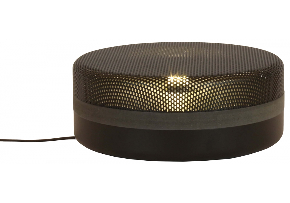 Steel Drop designed by e27 Berlin for Pulpo is a table lamp made of steel and perforated metal plate with PVC cable. Steel Drop has a the precision steel light screen that sits on an opaque metal base, separated by a thin band of black wood. Available in different finishes.