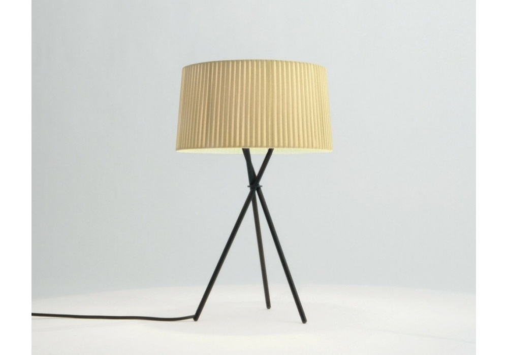 Tripode designed by Santa&Cole Team is a beautiful table lamp with metal structure and lampshade available in different finishes. A bundle of three black tubes, joined like a set of chopsticks, holds up a generous ribbon shade. When on, the lamp provides a generous, warm light, and when off, it stands like a large sculpture, lending rooms a touch of class. Also available in 2 sizes.