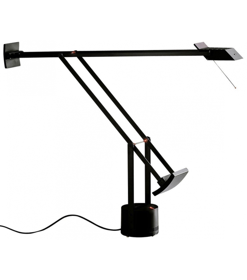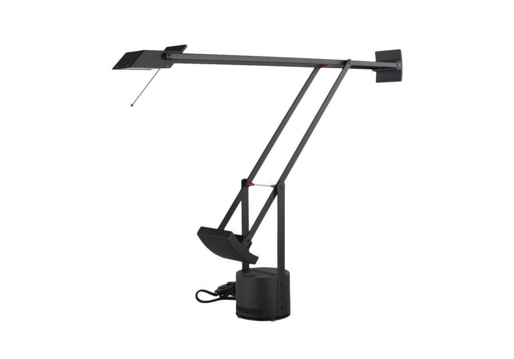 Tizio 35 designed by Richard Sapper for Artemide is a table lamp with cylindrical base in technopolymer and counterbalanced metal oscillating arms painted in black. The head is articulated and adopts an aluminum diffuser which shields a LED light source with two lighting intensities.