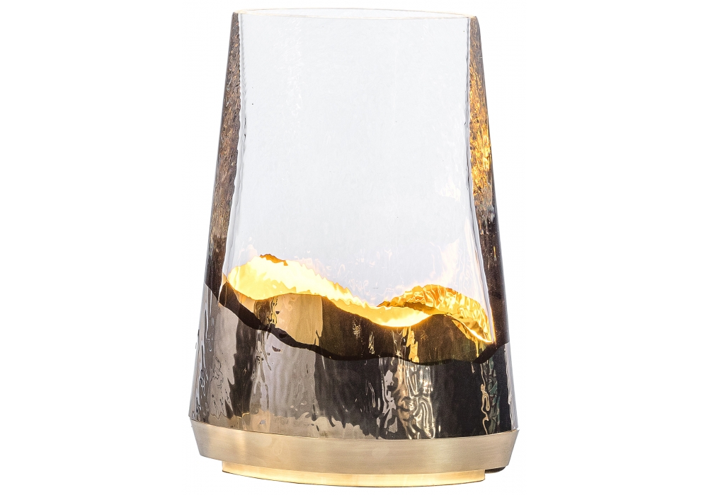 Flux designed by Ed Ng & Terence Ngan for Lasvit is a table lamp realized with hand-blown glass and metal. Its organic lines trap and refract light between the layers to create a deep radiance and the impression of water in motion. The Flux collection was inspired by light reflecting off the ocean in shallow water and the traces left by the receding tide.