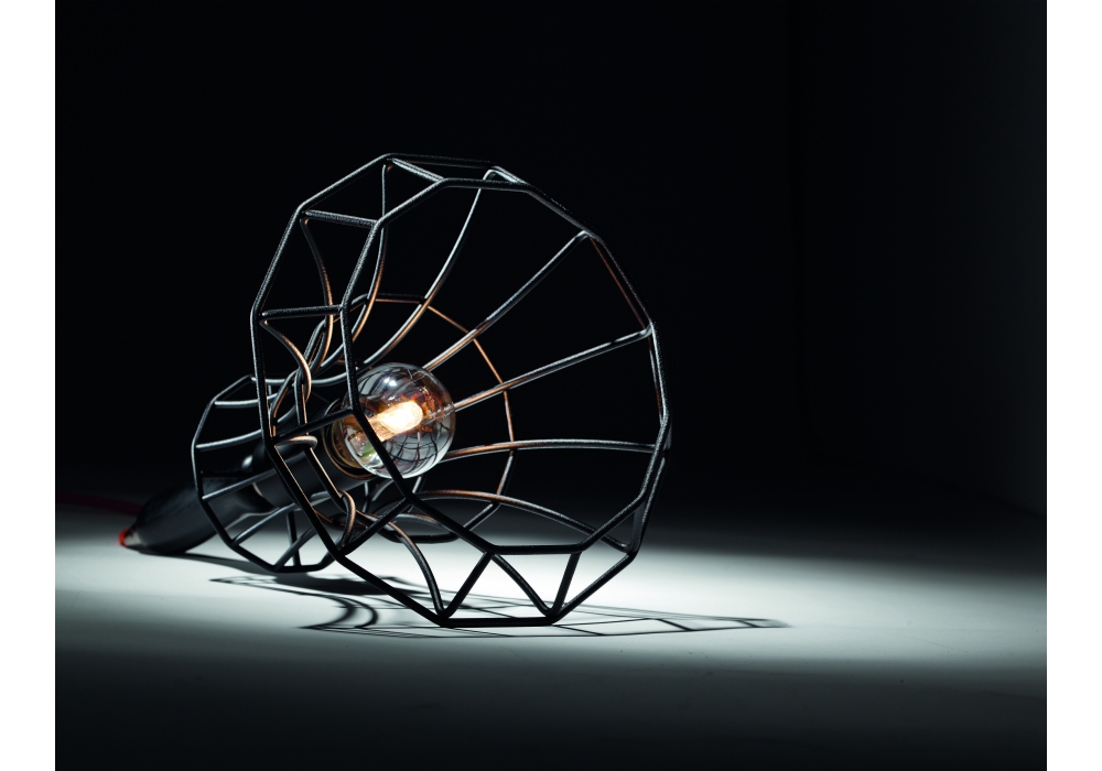 Lady Cage designed by Massimo Rosati for Zava is a table lamp made of iron and black plastic handle. Available in different finishes.