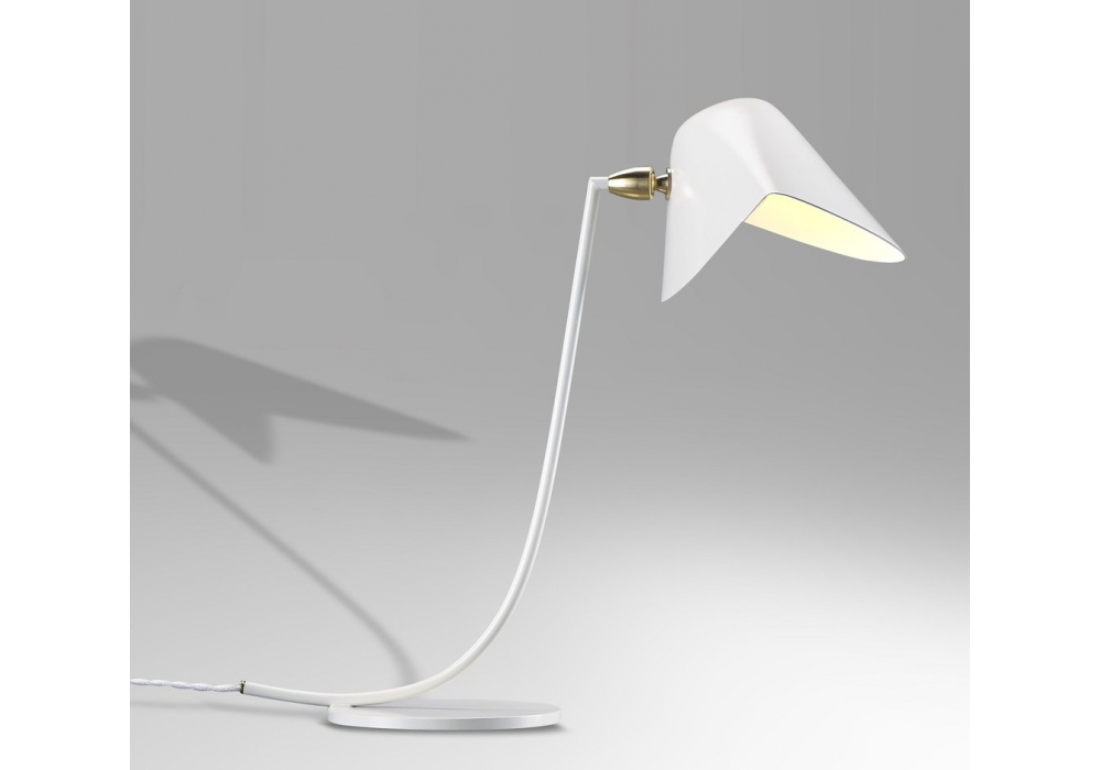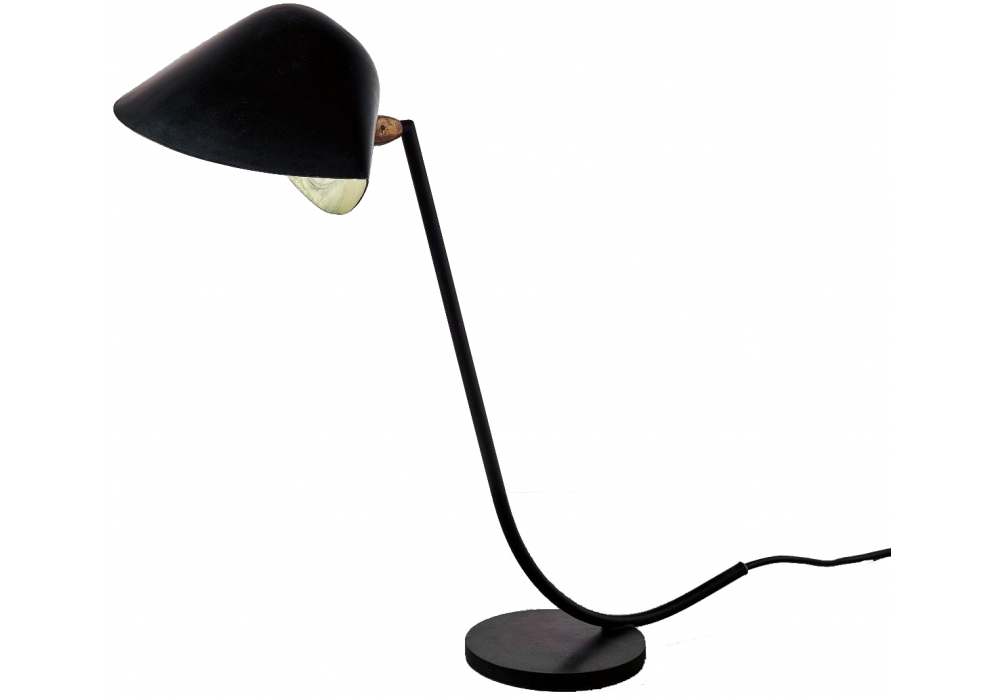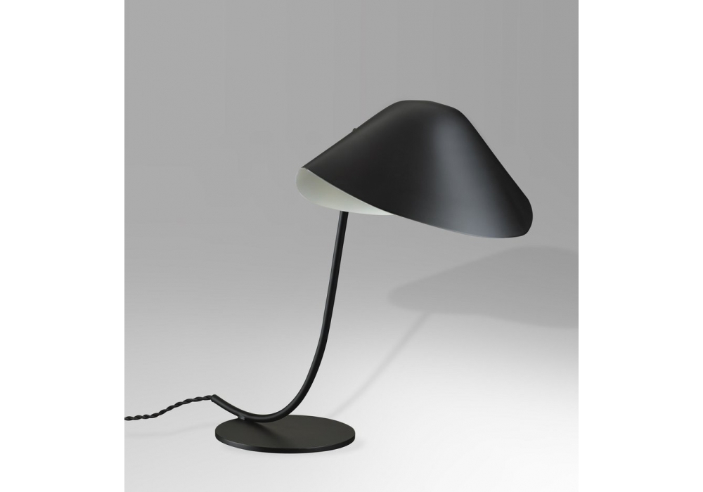Antony designed by Serge Mouille is a table lamp, the original 1955 model reissue. It have reflector made of black lacquered aluminum with white interior, the joint of brass. Light bulb: E14 42W halogen (included).