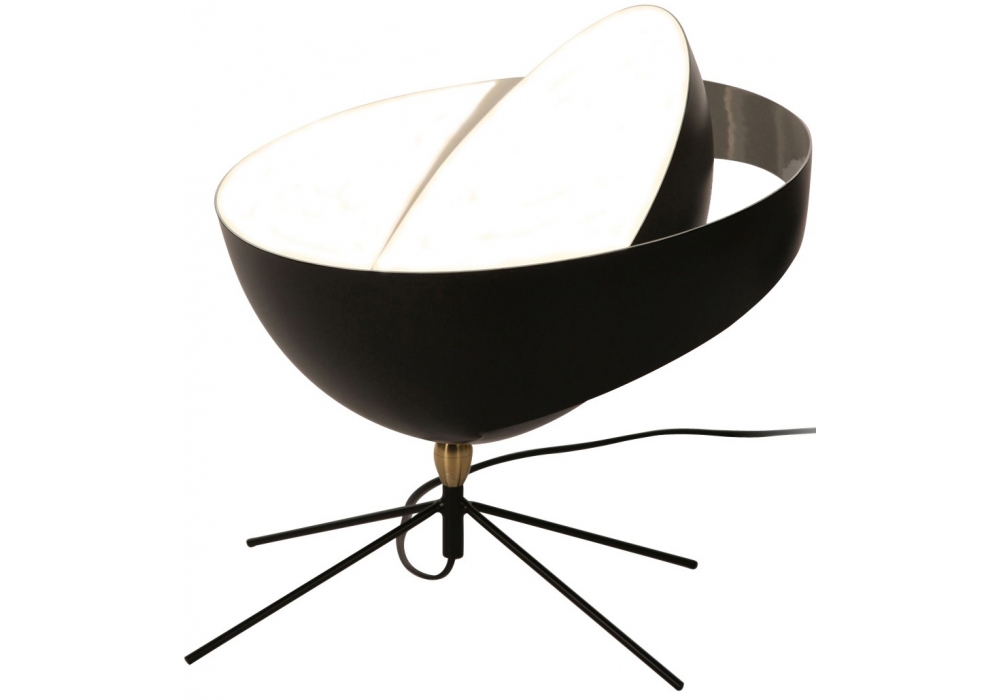 Saturnus designed by Serge Mouille is a table lamp, the original 1957 model reissue. It have reflector made of black lacquered aluminum with white interior, the joint of brass. Light bulb: E27 42W halogen (included).