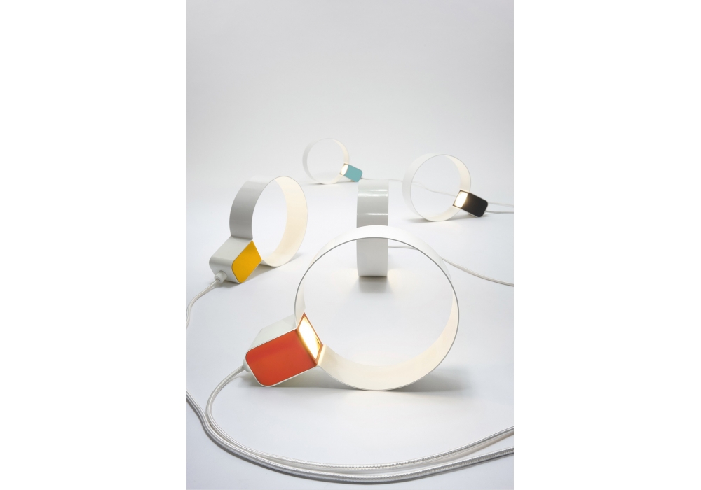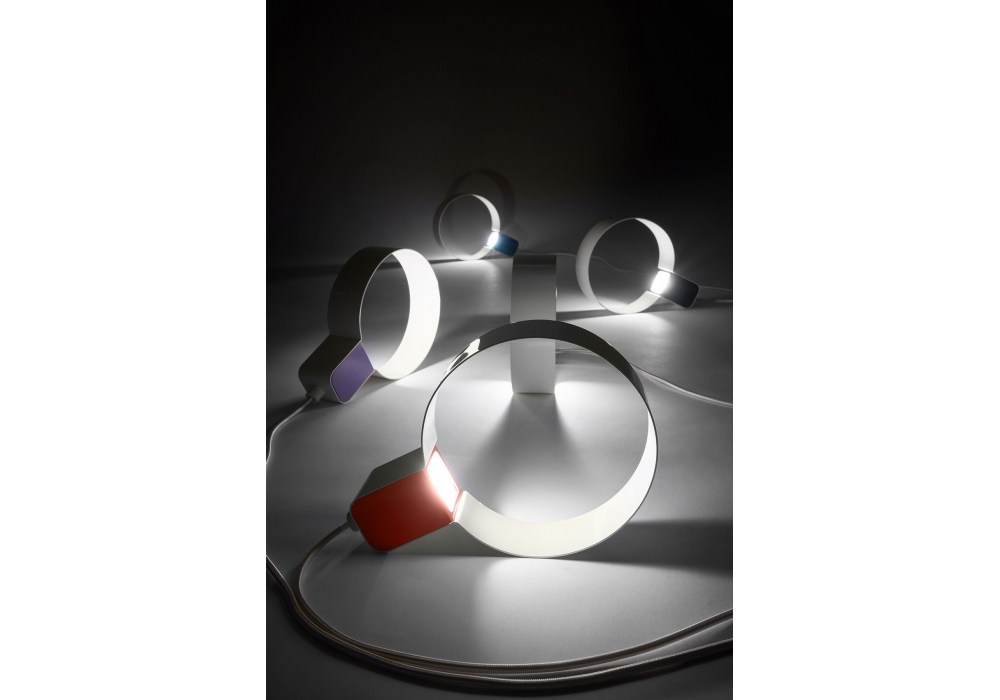 Sonoluce designed by Andrea Brugnera for Zava is a table lamp made of painted iron with matte finish, white circle and white rayon cable.Available in different finishes.