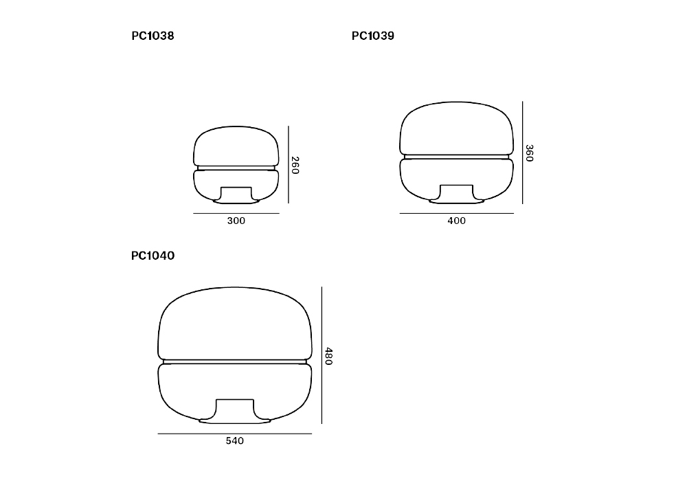 | Dimensions | Ø 30 x H 26 cm; Ø 40 x H 36 cm; Ø 54 x H 48 cm. |