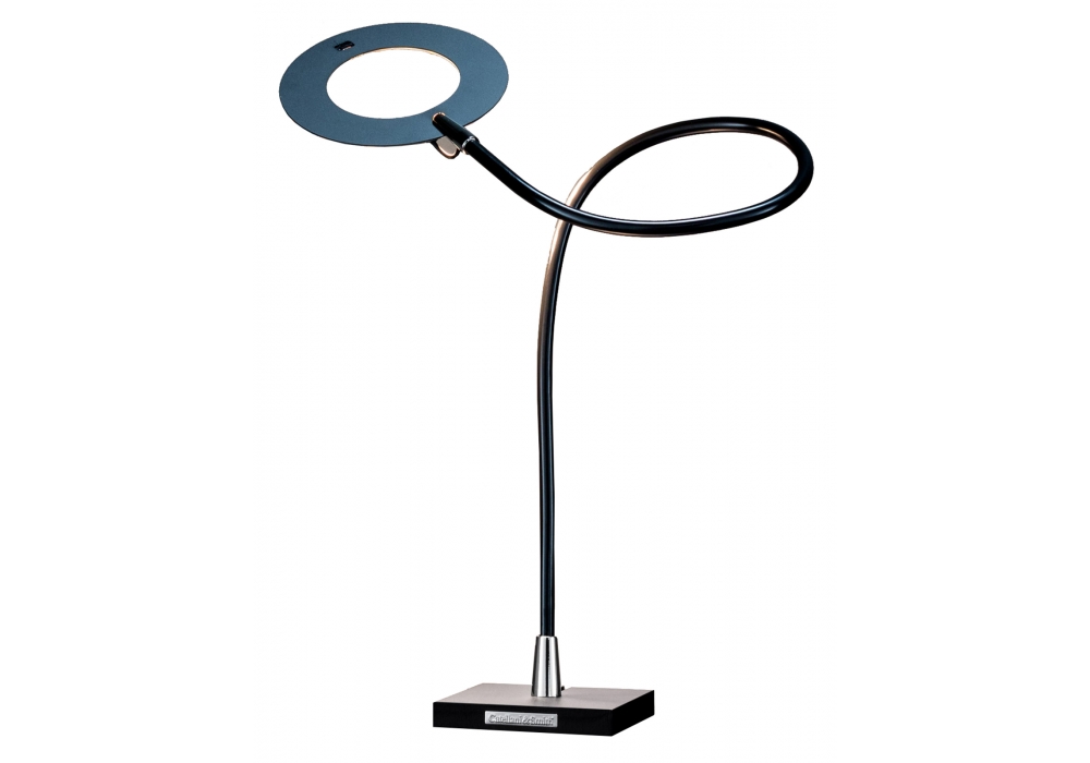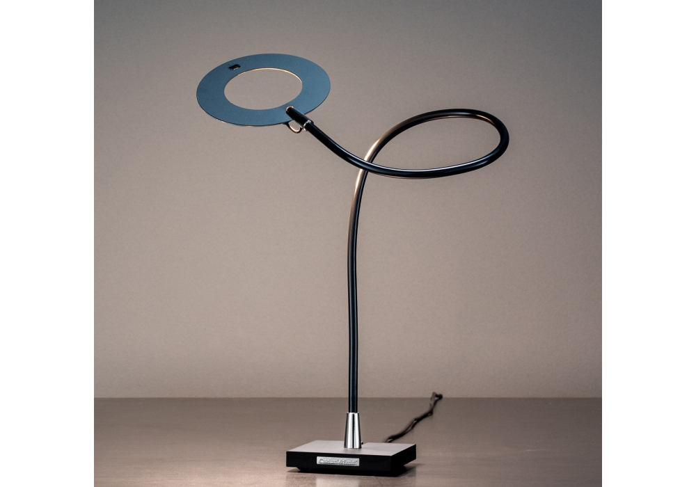 Giulietta T designed by Enzo Catellani for Catellani&Smith is an USB table lamp made of metal with black structure and ring available in black or nickel. USB charger with EU plug, with touch-less dimmer (memory last step).