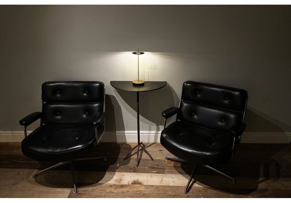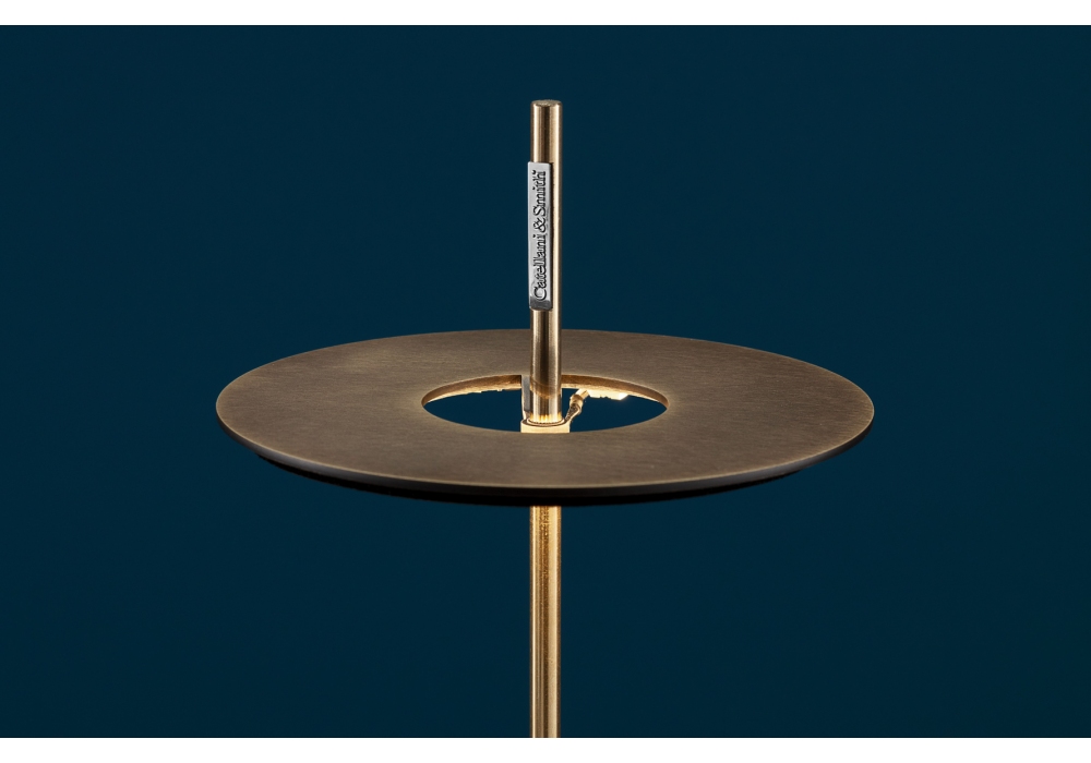Giulietta BE T designed by Enzo Catellani for Catellani & Smith is a LED table lamp with touch dimmer, made of brass. Available in the following variants: black base and hoop with brass rod, vintage brass base and hoop with brass rod. Battery power supply.