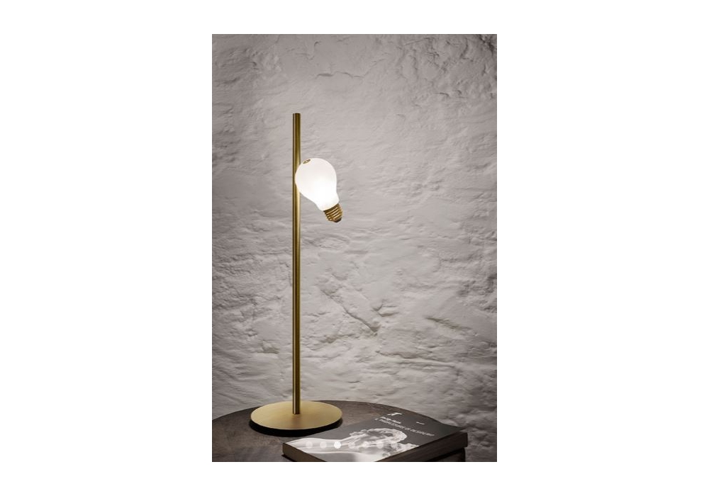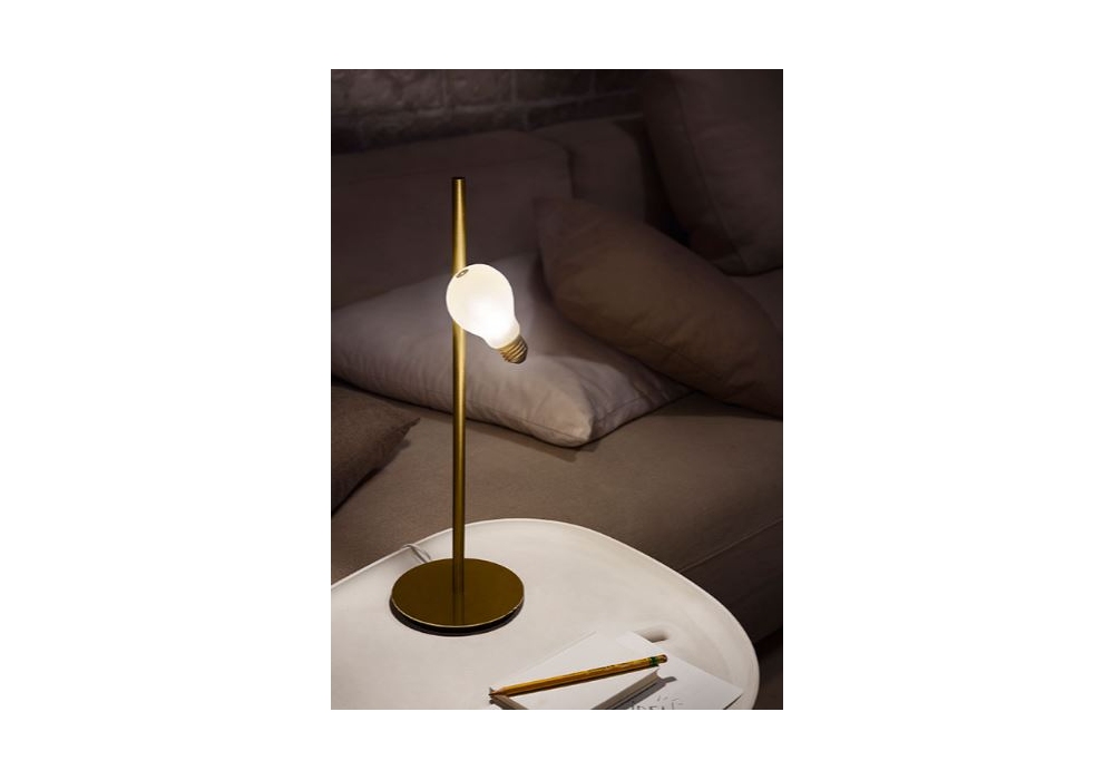 Idea designed by Marcantonio for Slamp is a table lamp with a circular base made of brushed brass and technopolymer. The light source used is of the LED type.