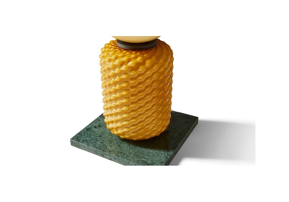 089 Ficupala designed by Cassina is a table lamp made with a marble base and glass body and diffuser. Available in different finishes.
