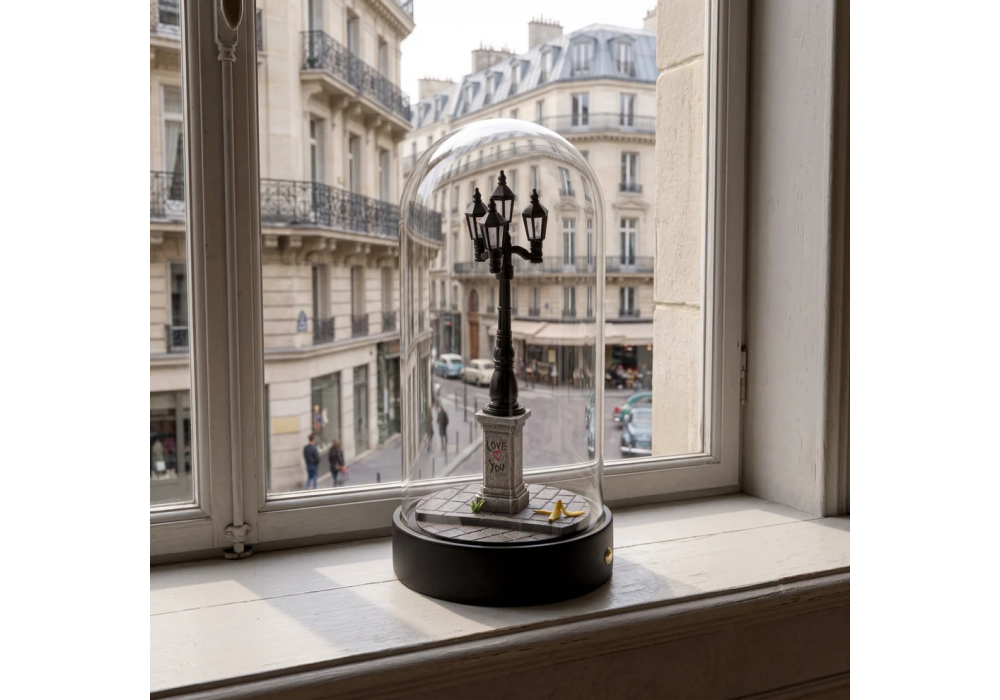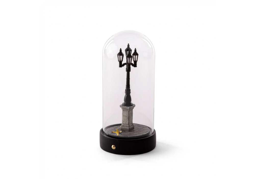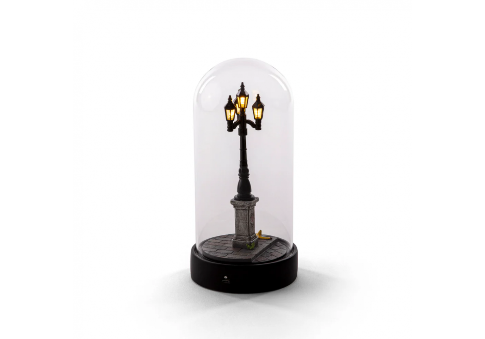 My Little Corner designed by Marcantonio for Seletti is a table lamp with a circular resin base with the representation of a small diorama. The protection bell is made of glass with an LED light source with a dimmable system powered by a USB cable.