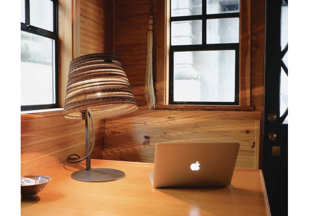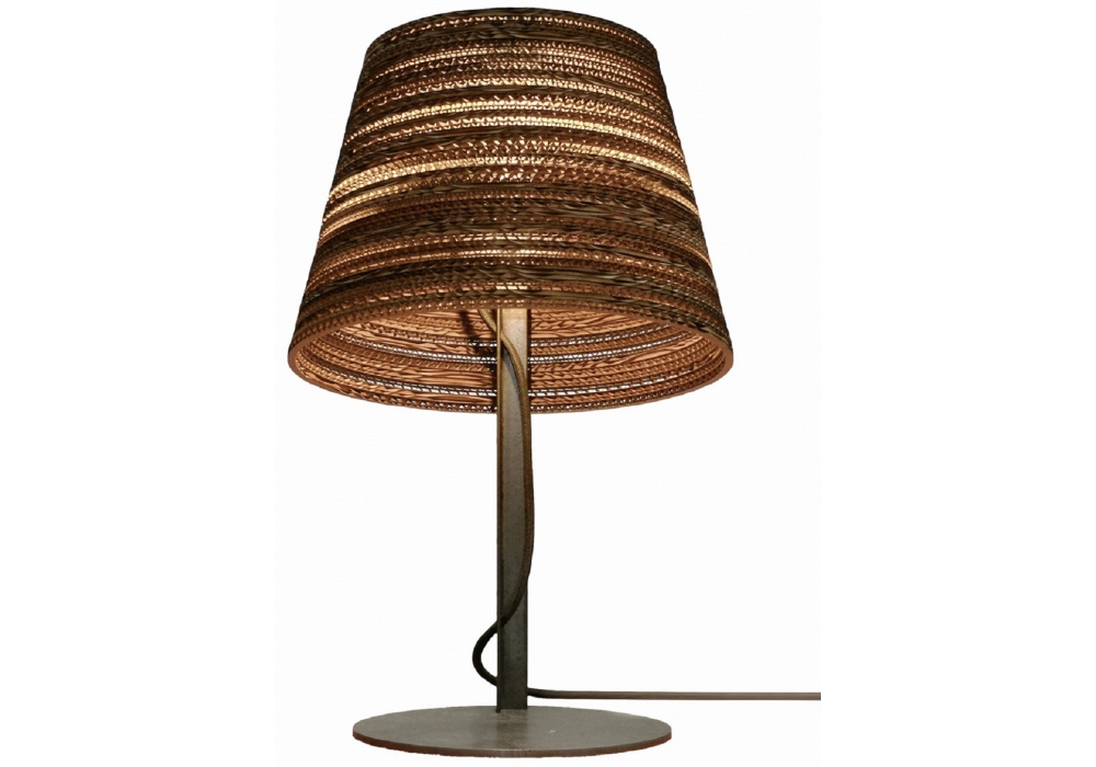 Tilt designed by Graypants is a table lamp with structure in powder coated steel (gray or black) and diffuser in corrugated recycled cardboard in two variants (white and natural). The cord is in white or black fabric.