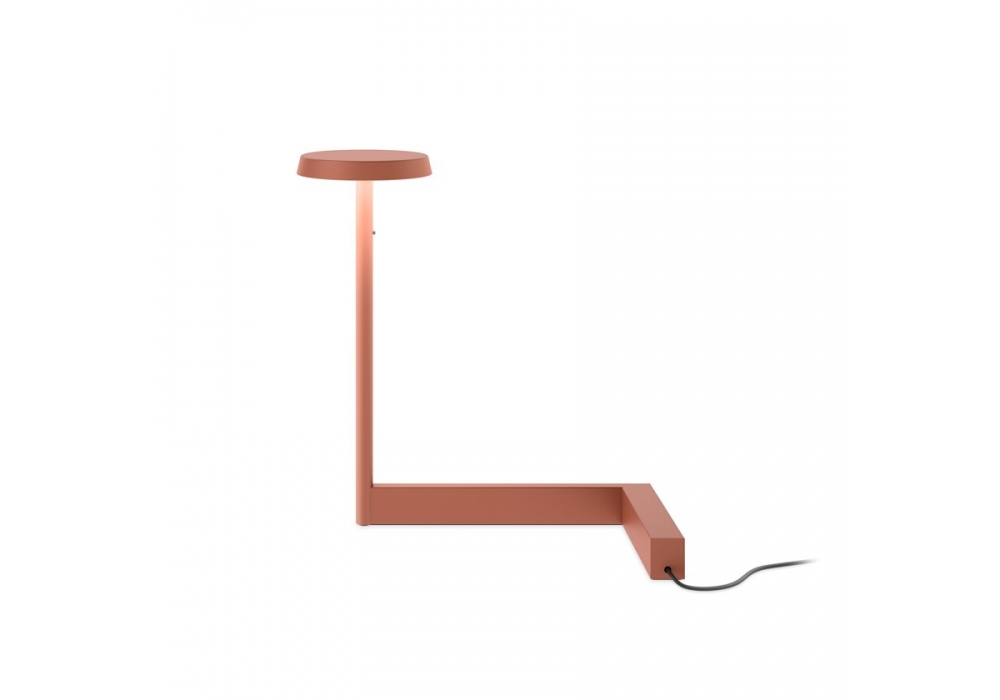 Flat 5970 designed by Ichiro Iwasaki for Vibia is a table lamp with painted steel support. The lampshade is in aluminum with a polycarbonate diffuser and shields a LED light source. Flat 5970 is available in different finishes.