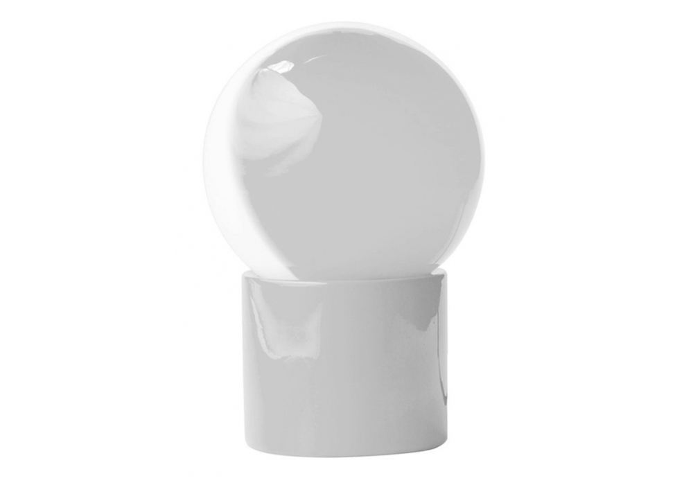 Pulce designed by Emiliana Martinelli for Martinelli Luce is a table lamp with cylindrical base in painted aluminum in different finishes. The spherical diffuser is in blown glass and screens an LED light source.