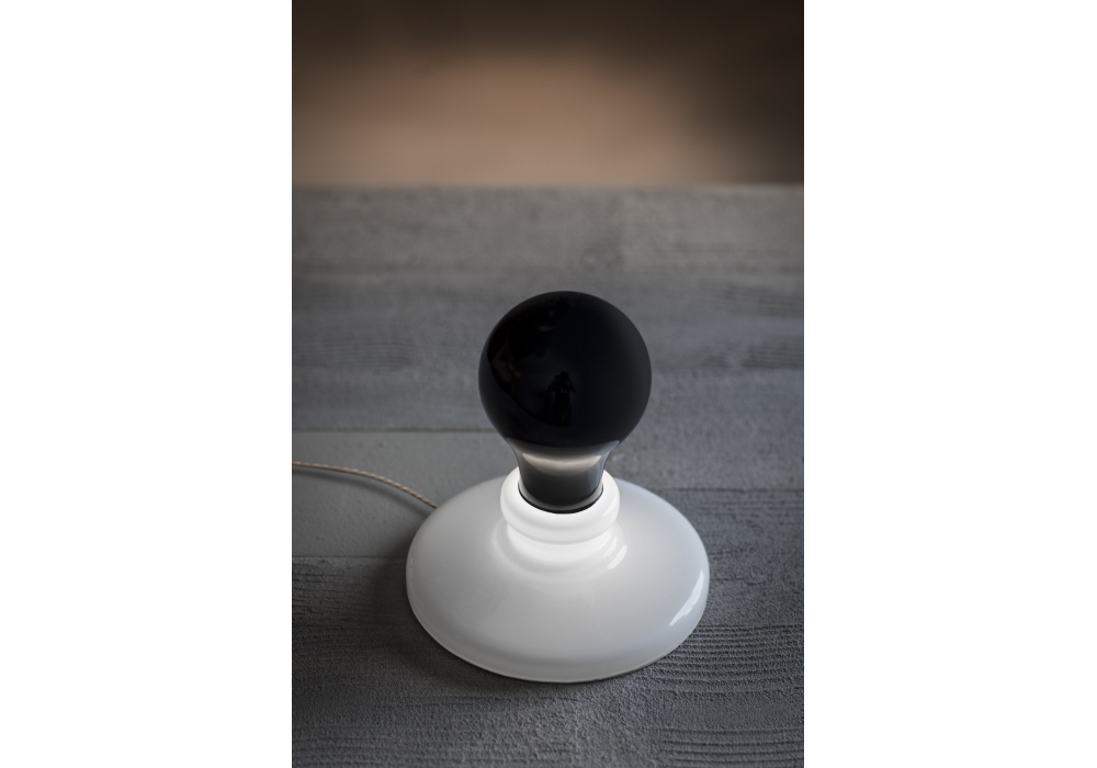 Light Bulb designed by James Wines / SITE for Foscarini is a table lamp with a circular base structured by the combination of blown glass and aluminium. The light source used is of the dimmable LED type powered by a transparent plastic cable. Light Bulb is available in different finishes.