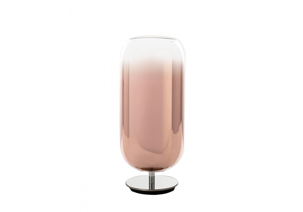 Gople designed by BIG - Bjarke Ingels Group for Artemide is a table lamp with circular base and vertical aluminum rod. The diffuser is cylindrical in shape and made of blown glass and shields an LED light source managed by a dimmer. Gople is available in different finishes.