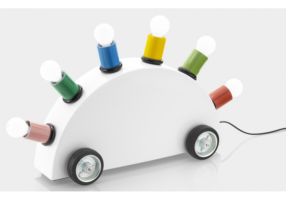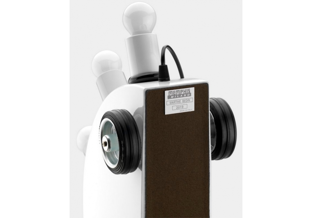 Super designed by Martine Bedin for Memphis Milano is a floor/table lamp made of fiberglass. Six E14, 40W bulbs. Available in different finishes.