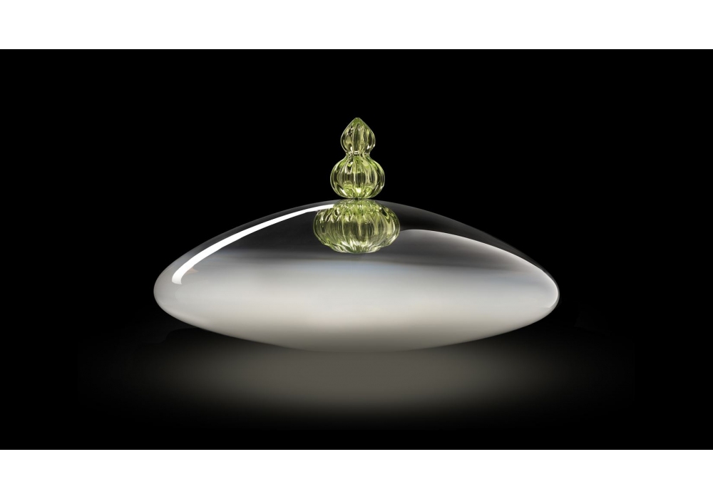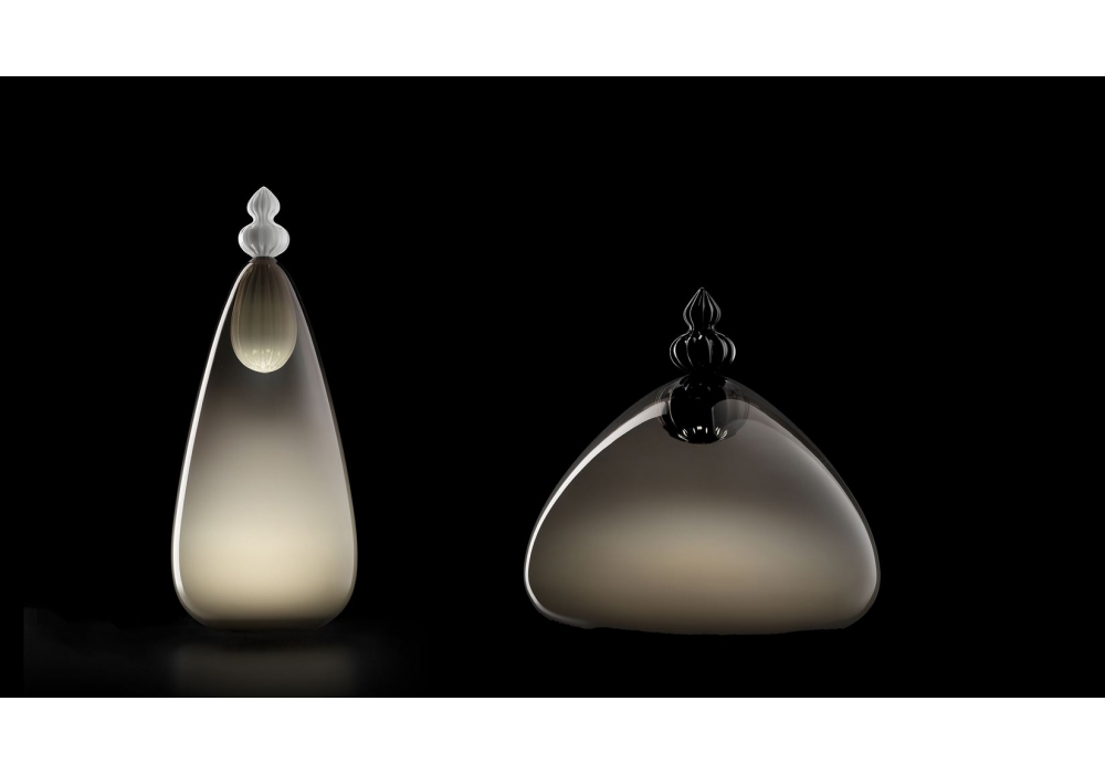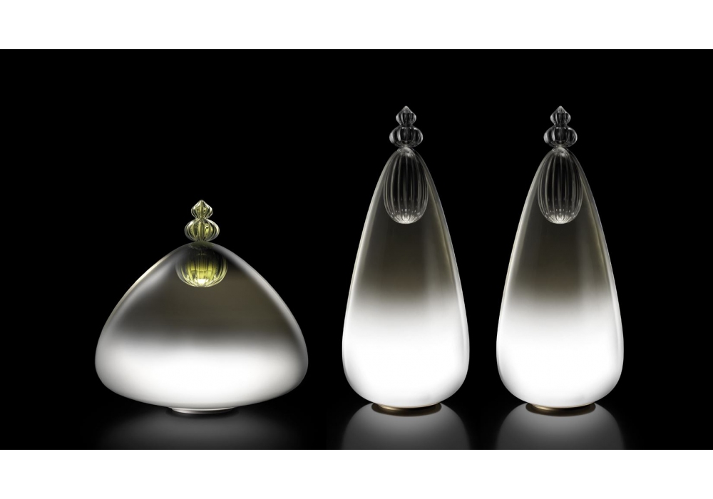 Padma designed and produced by Barovier & Toso is a table lamp with exposed metal parts in brushed black nickel or brushed gold. The diffuser is rounded in Venetian glass and shields a dimmable LED light source. Padma is available in different models and finishes.
