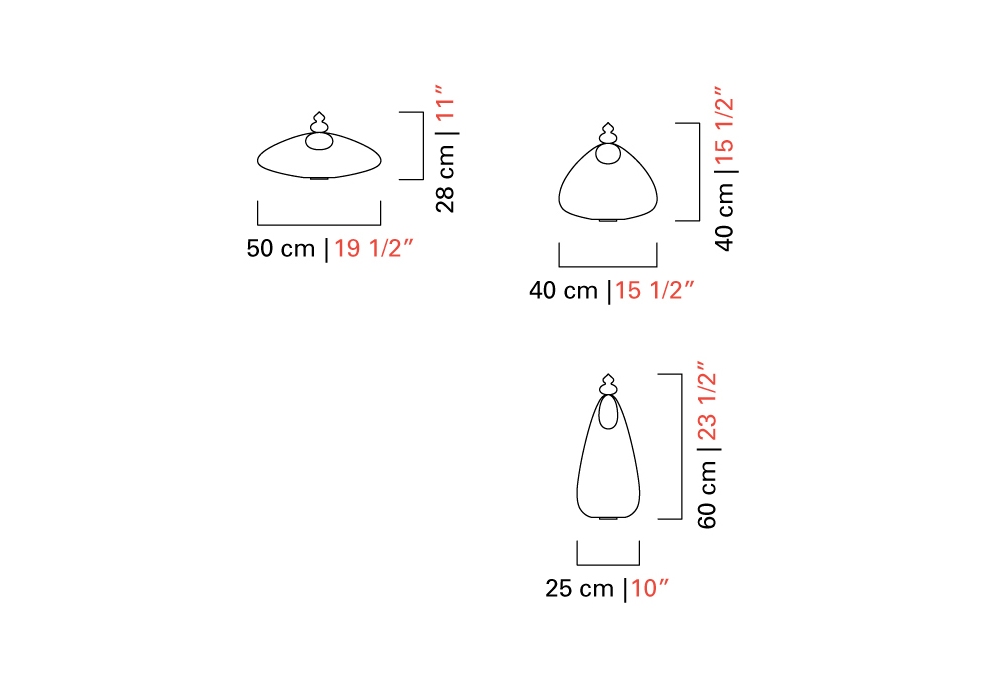| Dimensions | Ø 50 x H 28 cm; Ø 40 x H 40 cm; Ø 25 x H 60 cm. |