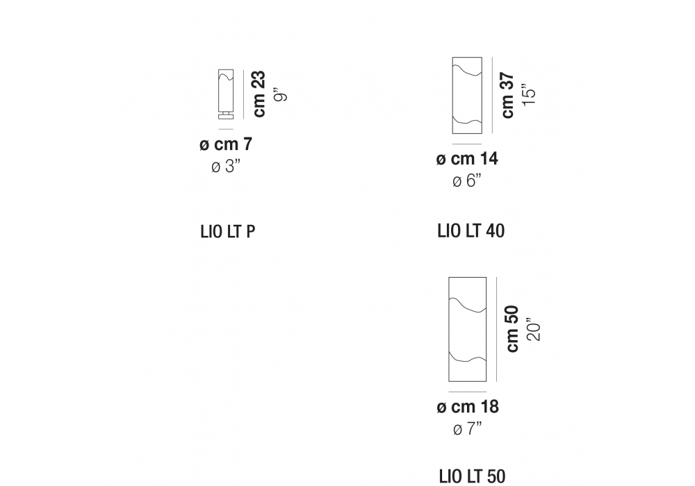 | Dimensions | Ø 7 x H 23 cm; Ø 14 x H 37 cm; Ø 18 x H 50 cm. |