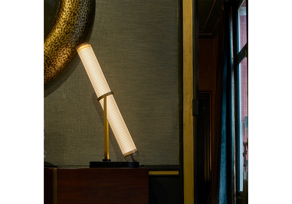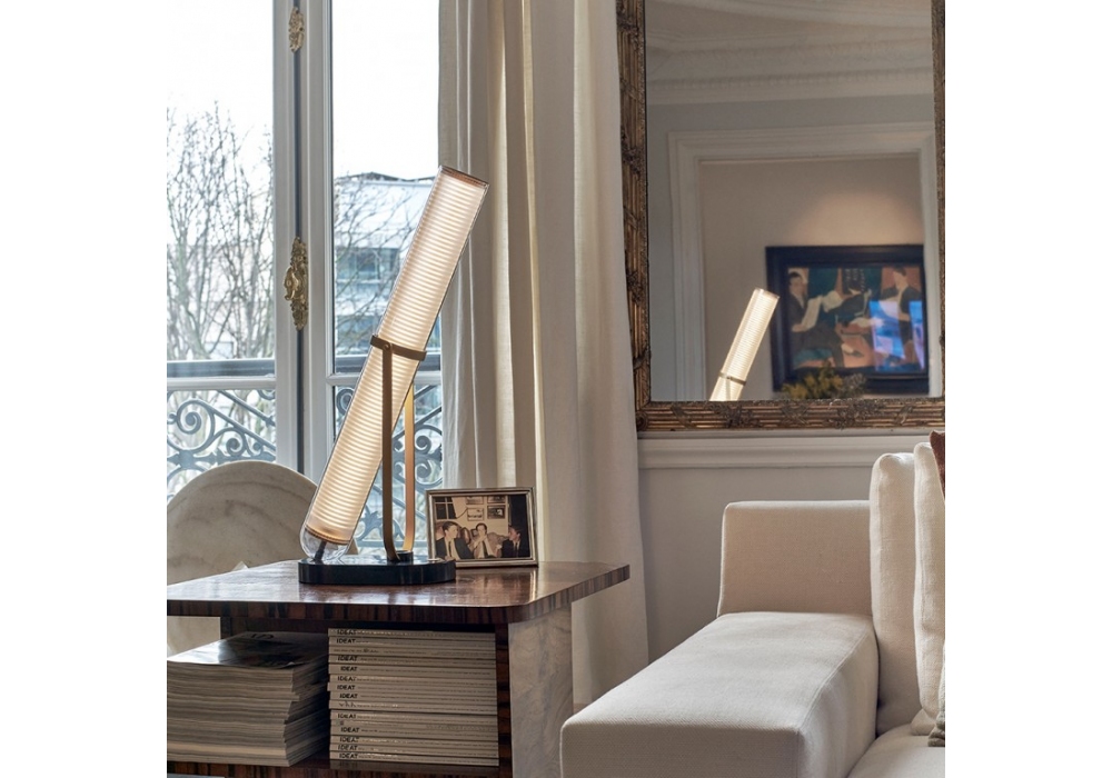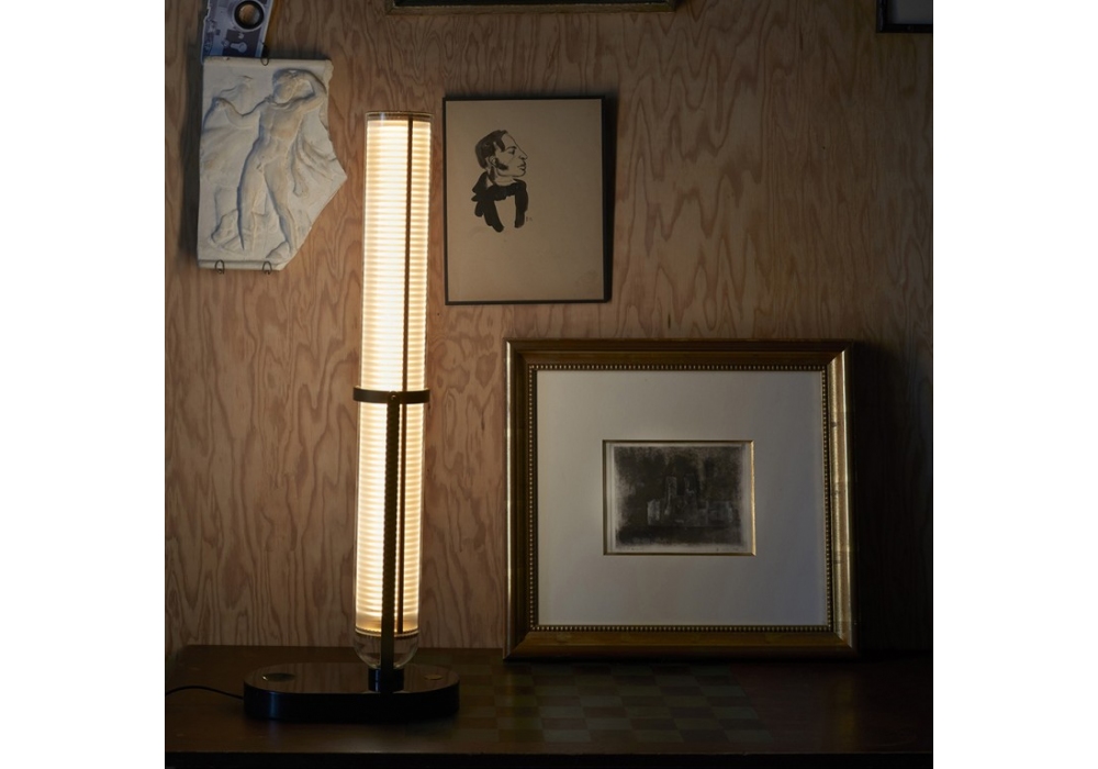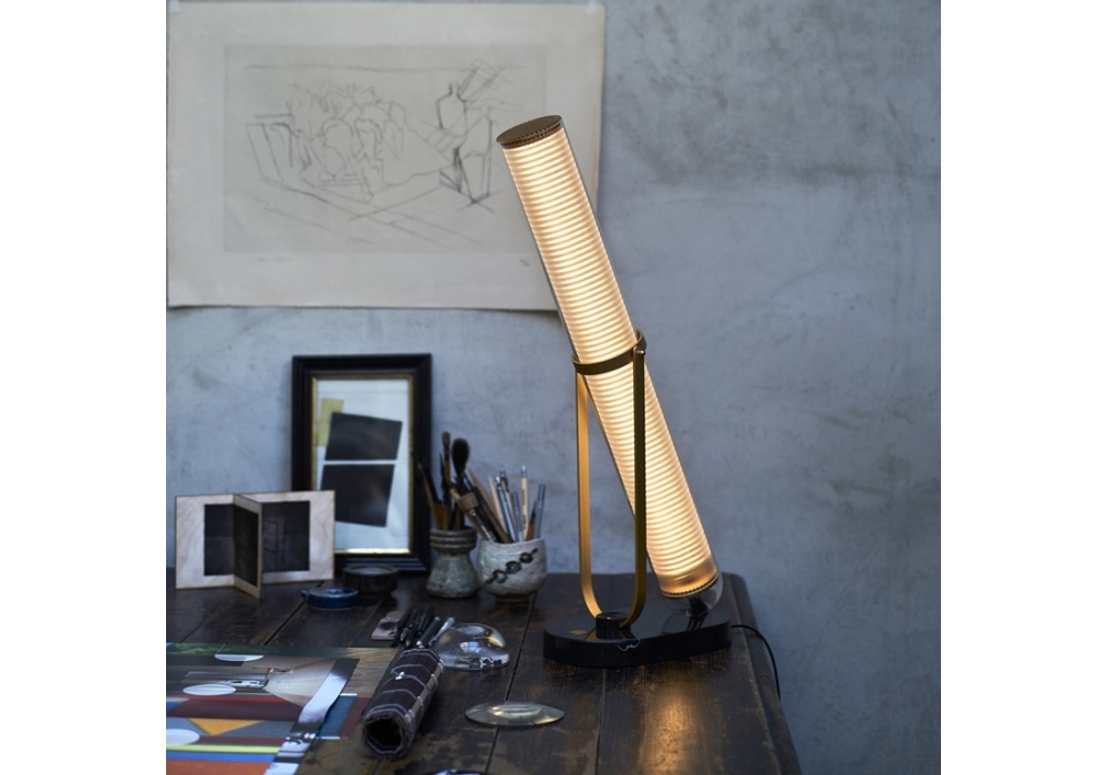La Lampe Frechin designed by Jean-Louis Frechin for DCW Éditions is a table and floor lamp composed of a base in black marble and anodized aluminum, and a borosilicate tube.