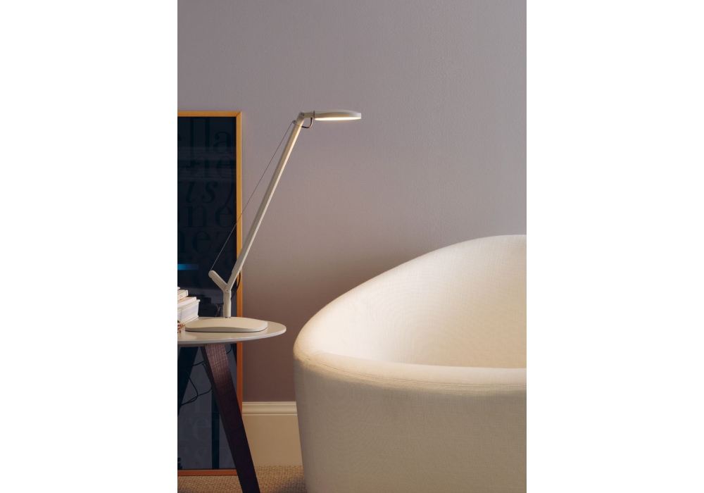 Demi Volée designed by Odo Fioravanti for Fontana Arte is a table lamp with cantilevered arms in extruded aluminum available in the following finishes: white, yellow or dark gray. The diffuser is in adjustable die-cast aluminum, and adopts a dimmable touch LED light source (included).