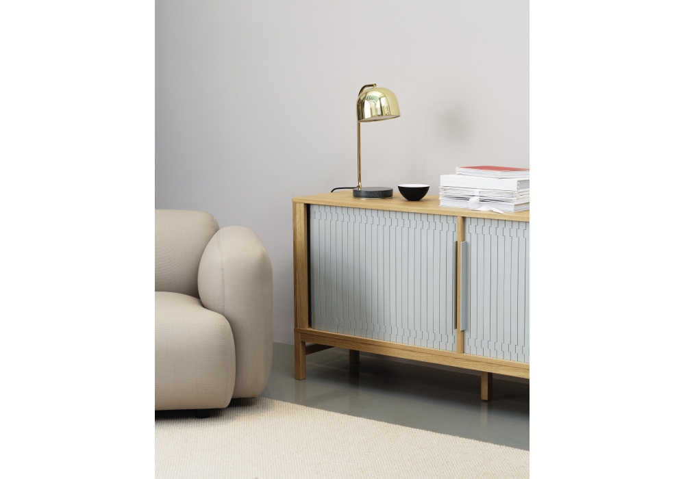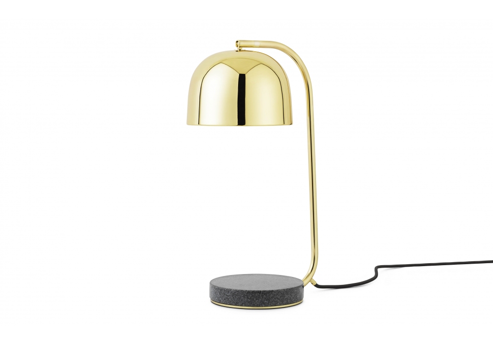 Grant designed by Simon Legald for Normann Copenhagen is the table lamp, entirely structured in steel, with a base in usual gray granite. The lampshade has a bell shape and can be oriented on a horizontal axis, thanks to a ball pin placed in the upper anchoring part. The light source used is a dimmable LED type (included), powered by a black textile fiber cable. Grant is available in colors, black or brass and in EU (Europe) or US (U.S.A) version.