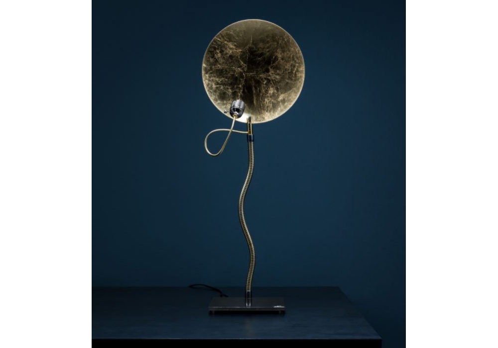 Luce d'Oro T designed by Enzo Catellani for Catellani & Smith is a LED table lamp, with base in raw waxed iron, flex in brass or nickel, disc in aluminum coated in different finishes. The on / off driver is included.