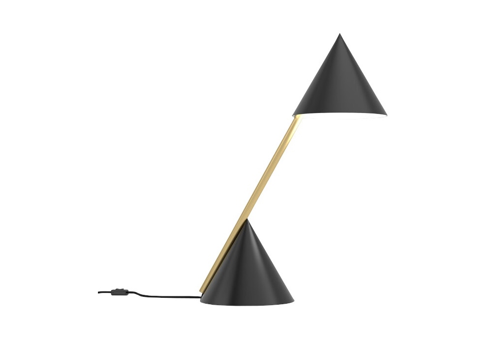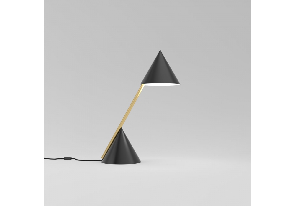 Hat Light designed by Atelier Areti is a table lamp with structure in brushed brass or nickel, cones in white or black painted metal and reflector in brass or white finish.