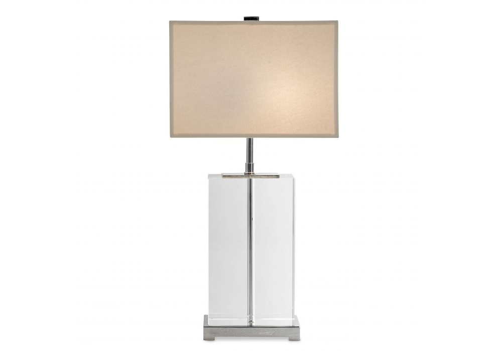 Table Lamp Bridgefield designed by Eichholtz is a table lamp with a rectangular crystal body and a basal plate with a nickel finish. A cream-colored rectangular lampshade completes its modern aesthetic