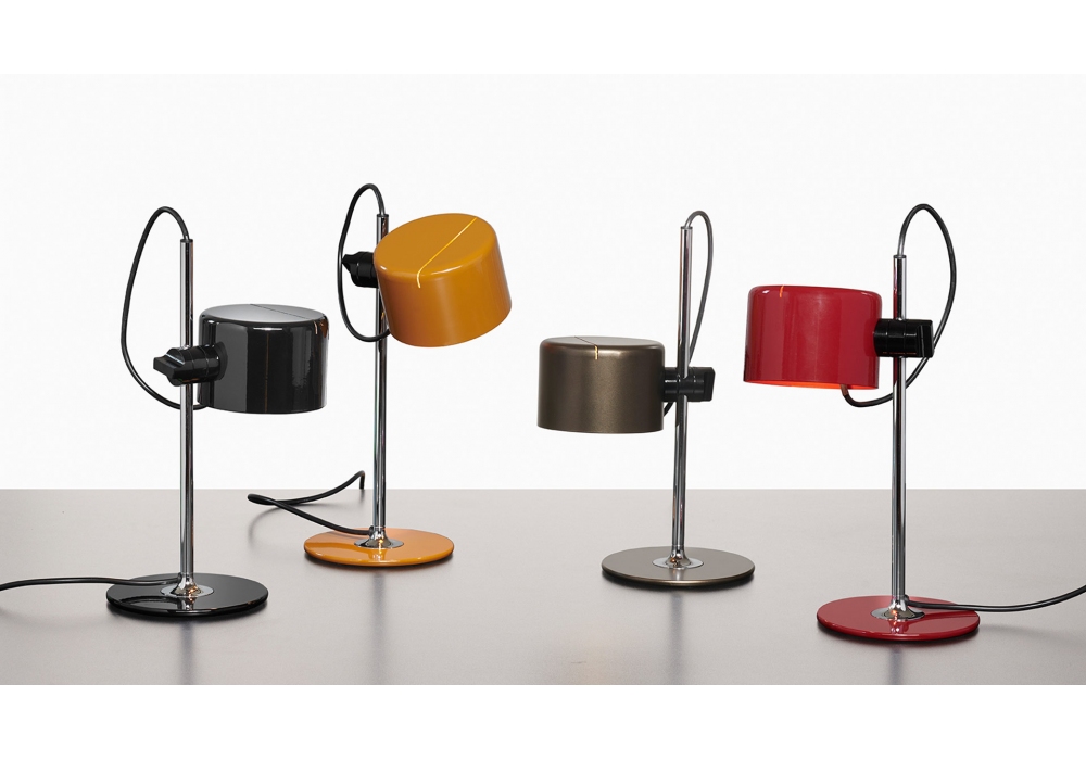 Mini Coupè designed by Joe Colombo for Oluce is a table lamp with circular base in painted metal and vertical rod in chromed tubular metal. The diffuser is adjustable and made of fire-painted aluminium. The light source used is with an E27 LED or halogen fitting. Coupè is available in different finishes.