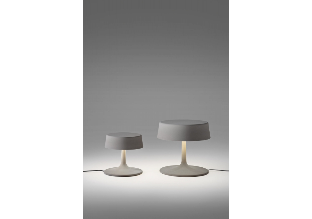 China designed by Nicola Gallizia for Penta is a table lamp entirely made of metal with base and circular lampshade painted in different finishes. The light source is of the LED type with dimmer system on the power cable. China is available in different sizes.