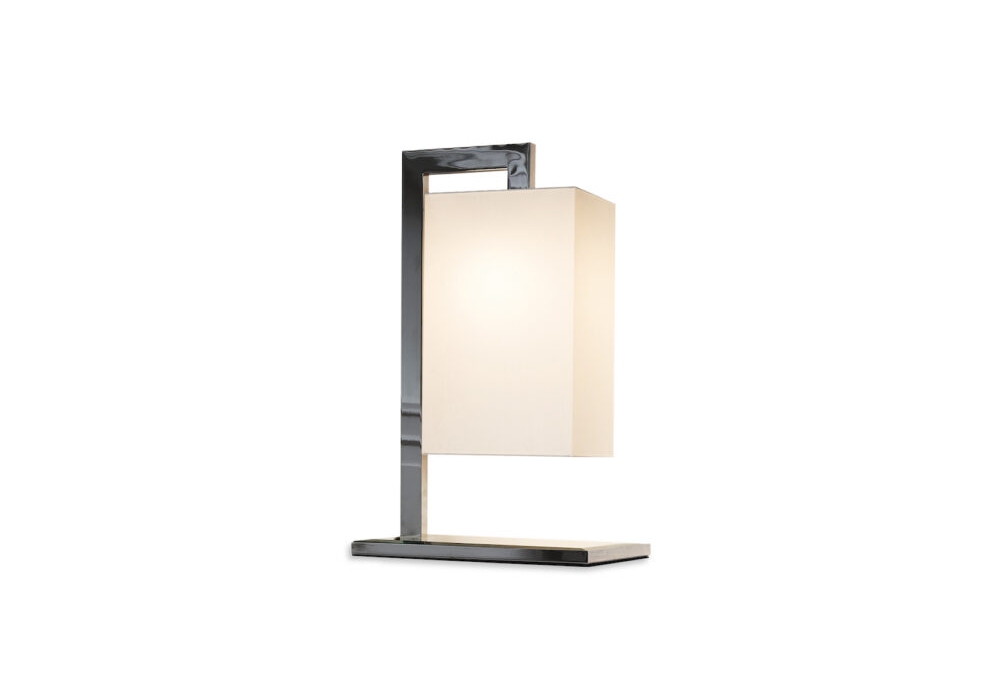 Coco Deluxe designed by Tristan Auer for Contardi is a table lamp with quadrangular base and metal structure in polished nickel finish. The lampshade is quadrangular in shape and shields an LED light source. Coco Deluxe is available in different dimmable versions.