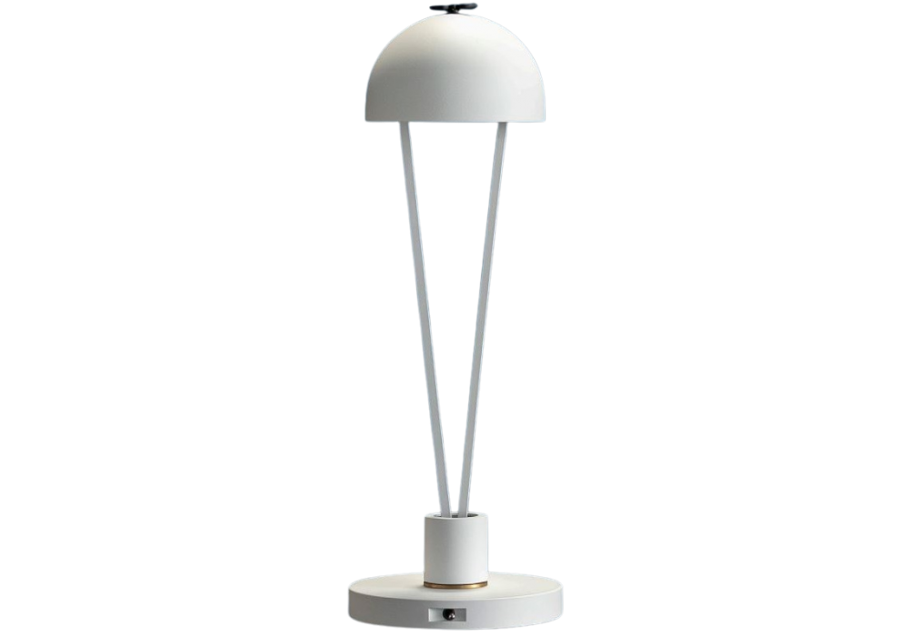 Ale BE T designed by Enzo Catellani for Catellani & Smith is a battery-powered table lamp, with aluminum base and tubes, iron dome, brass and steel details. Available in different finishes.