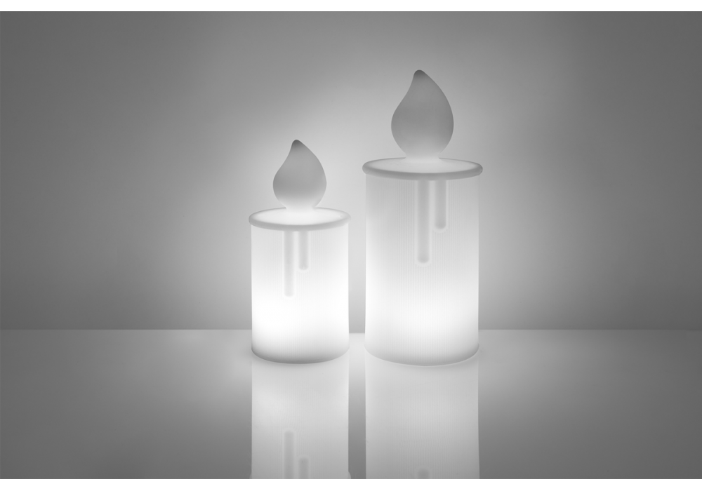 Fiammetta designed by Alberto Ghirardello for Slide is a candle-shaped table lamp ideal as a centerpiece. Available in different versions and finishes