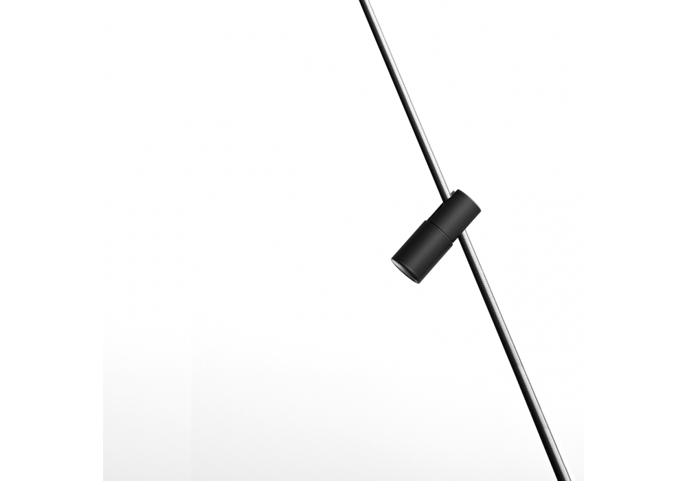 FM designed and produced by Davide Groppi is a table lamp structured by a cylindrical base in ABS, a movable rod in carbon fiber and an adjustable metal spot. The light source adopted is of the LED type, which can be dimmed in different shades of light.