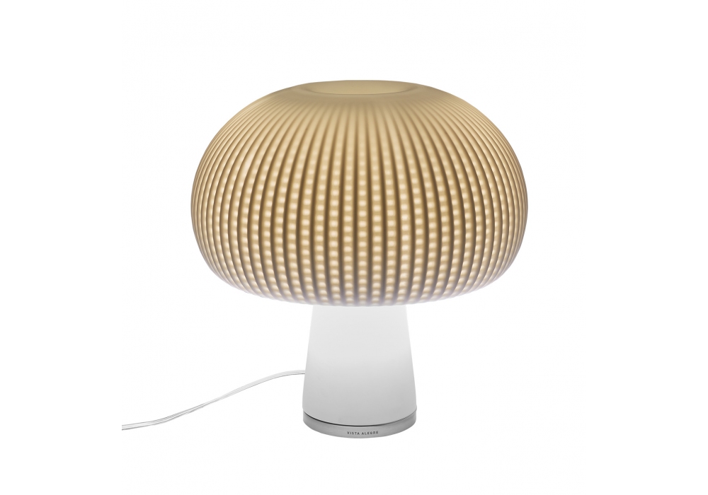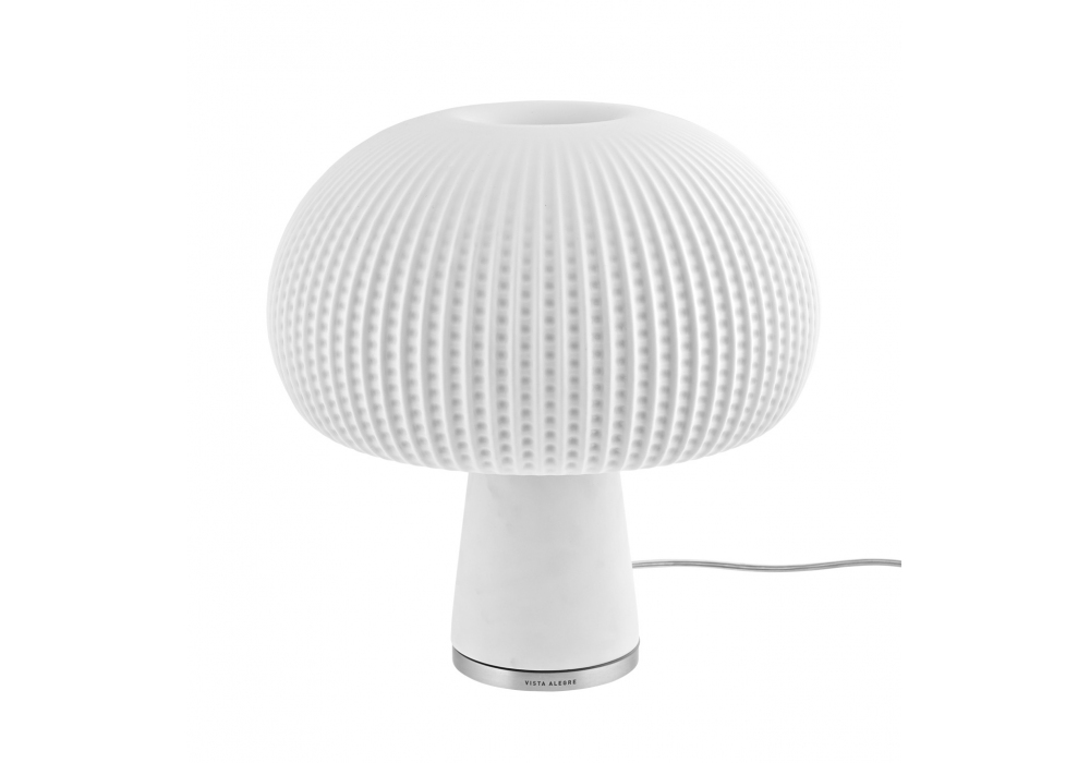 Hryb designed by Ross Lovegrove for Vista Alegre is a table lamp made of porcelain and crystal.