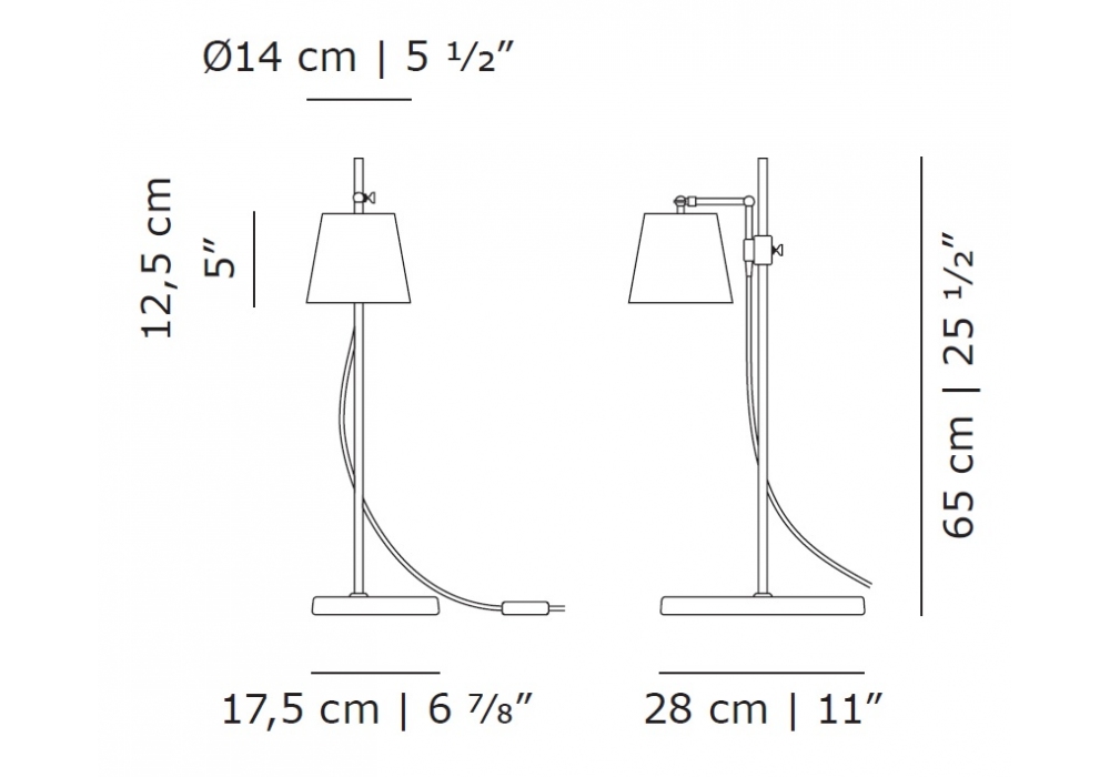 Lab Light designed by Anatomy Design for Karakter is a table lamp with diffuser in brushed brass, transparent lacquer, stem in painted steel and base in white porcelain. Power supply with interchangeable plugs (EU / UK / AU) included.