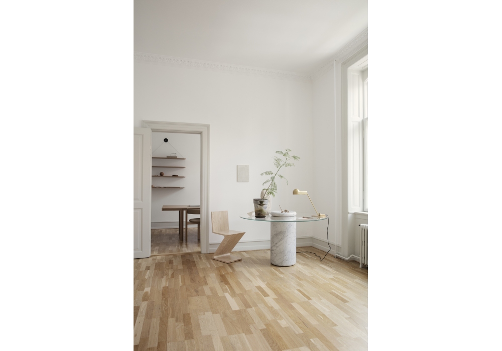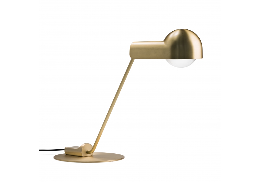Domo Table designed by Joe Colombo for Karakter is a table lamp made of brass with brushed surface and transparent varnish, steel with black powder coating or steel with powder-coated lamp head and base and chrome-plated stem. Available in different finishes.