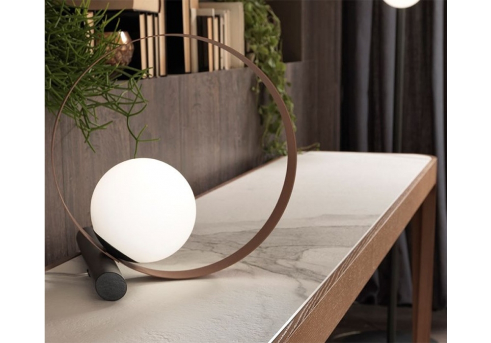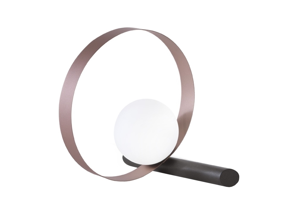 Bubble T designed by Riflessi is a table lamp made up of a painted metal ring and a graphite painted support tube. Electric cable in black fabric. The light source comes from the white frosted glass bulb. Available in 2 dimensions.