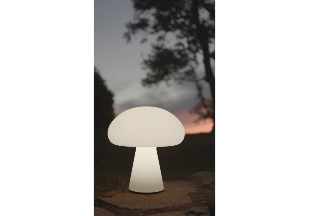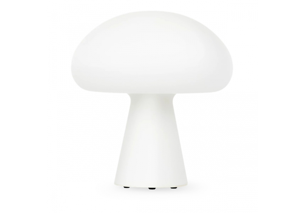 Obello designed by Bill Curry for Gubi is a rechargeable lamp can easily be moved between inside and out. With a complete charge in four and a half hours, providing up to 40 hours of light. It is made from frosted mouth-blown glass.