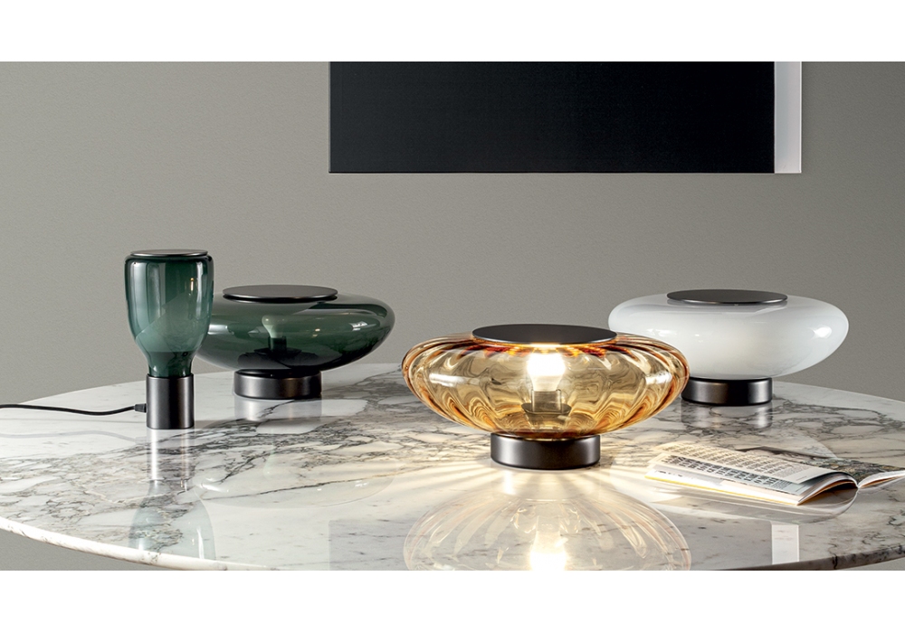 Acquerelli designed by Marco Zito for Bonaldo is a table lamp with lead-colored metal base and glass lampshade in various colors. Available in 2 sizes.
