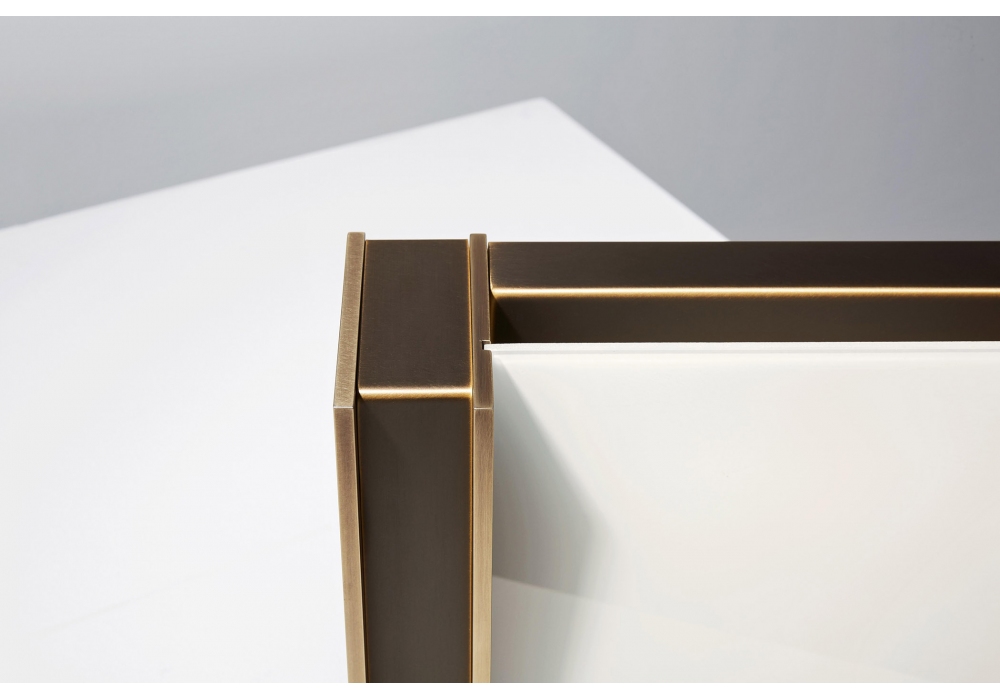 Glam designed by Massimo Tonetto for Venicem is a table lamp with diffused light. Structure in pewter and delabré brass finish or burnished natural brass and dark burnished brass. White glass diffuser.