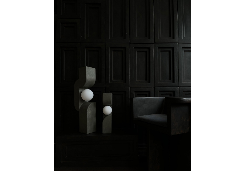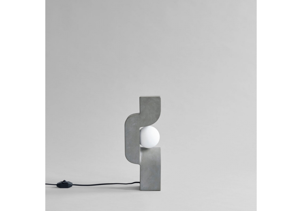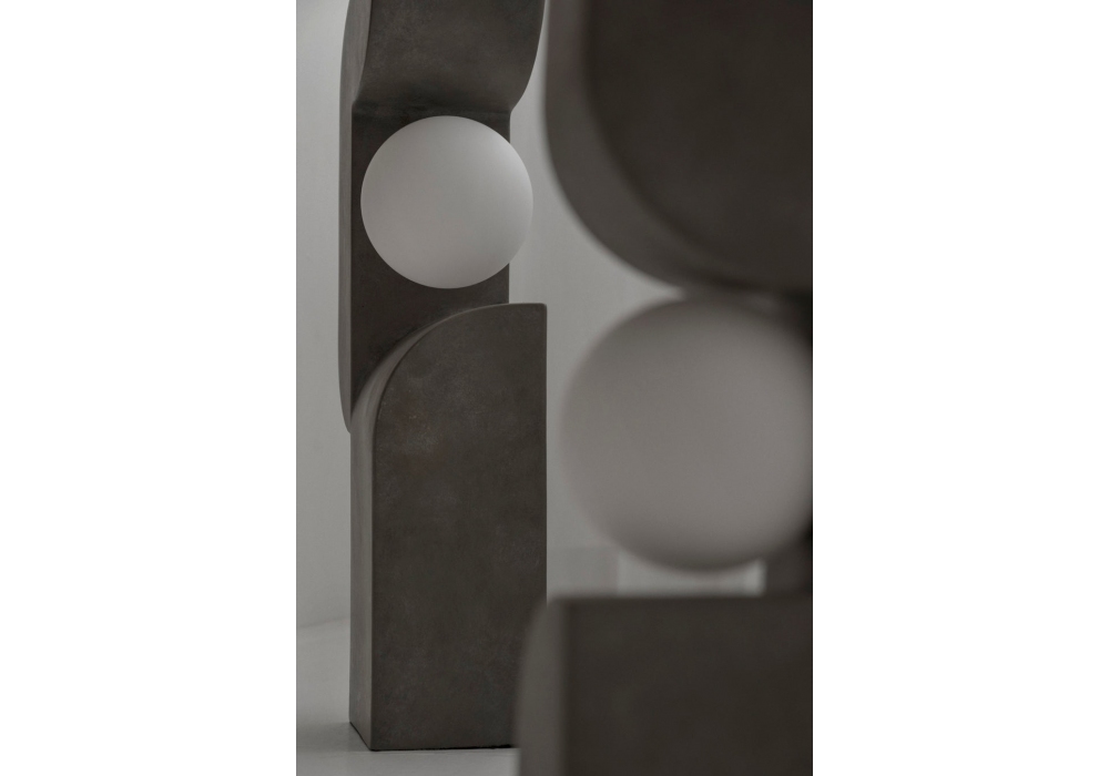 Sitting Man Mini designed by Kristian Sofus Hansen & Tommy Hyldahl for 101 Copenhagen is a table lamp made of concrete and opal glass sphere.