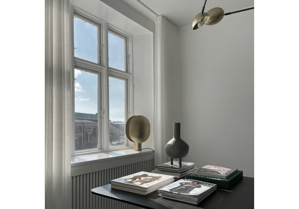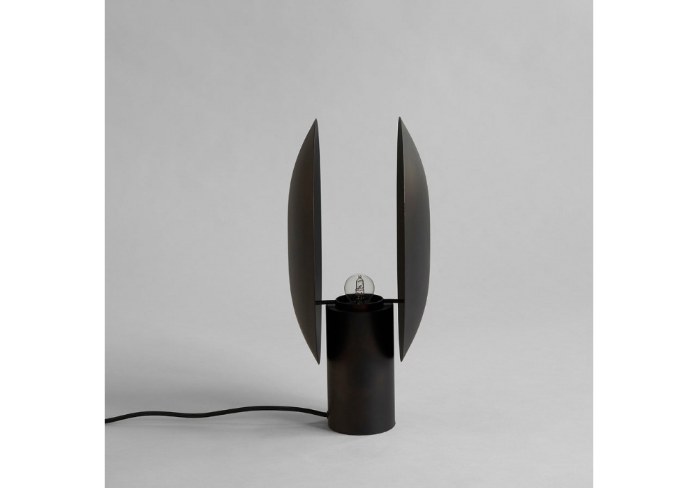 Clam designed by Kristian Sofus Hansen & Tommy Hyldahl for 101 Copenhagen is a table lamp made of plated metal available in different finishes or oxidized.