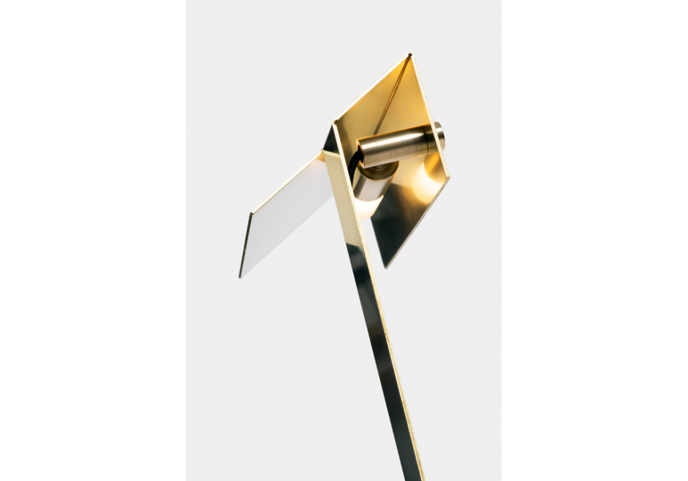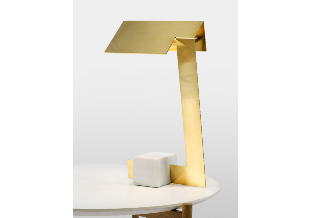Clark 01 designed and produced by Lambert & Fils is a table lamp with lampshade in polished brass or powder-coated aluminum and marble base. Available in different finishes.