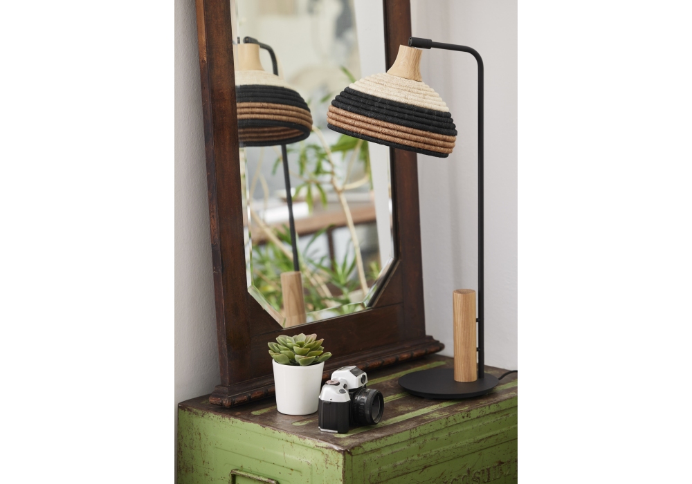 Grass designed by Jette Scheib for Forestier is a table lamp with wooden diffuser covered with a velvet and cotton textile cord and black metal base. Available in different finishes.
