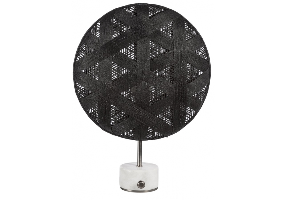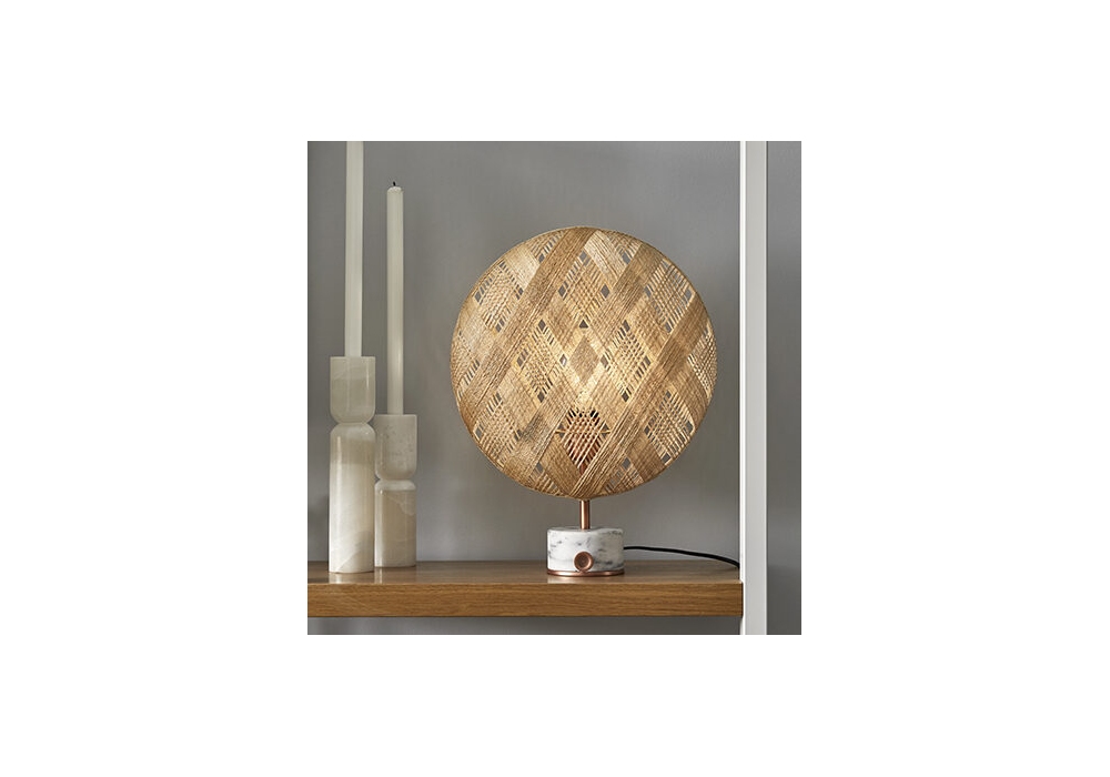 Chanpen designed by Anon Pairot for Forestier is a table lamp with round marble base equipped with dimmer, metal structure, round lampshade Ø 26 cm or Ø 36 cm, made of abaca and textile cord. Available in different finishes and versions.