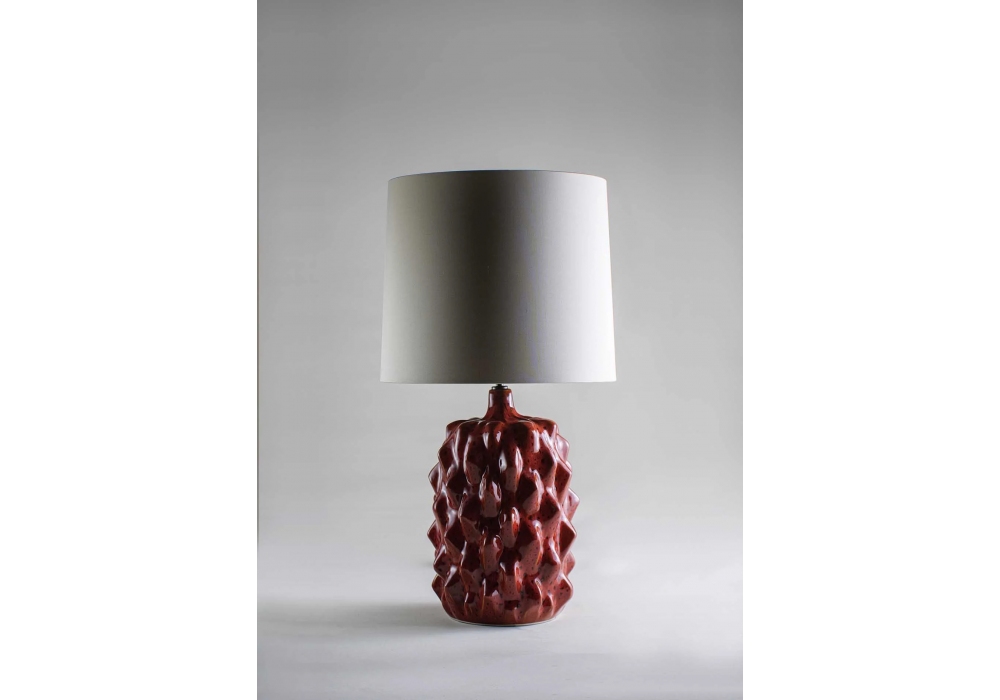 Baobab designed and produced by Porta Romana is a structured table lamp in glazed ceramic and metal. The lampshade is in fabric and screens a light source with an E27 socket of the LED type powered by a textile fiber cable. Baobab is available in different finishes for each single element.