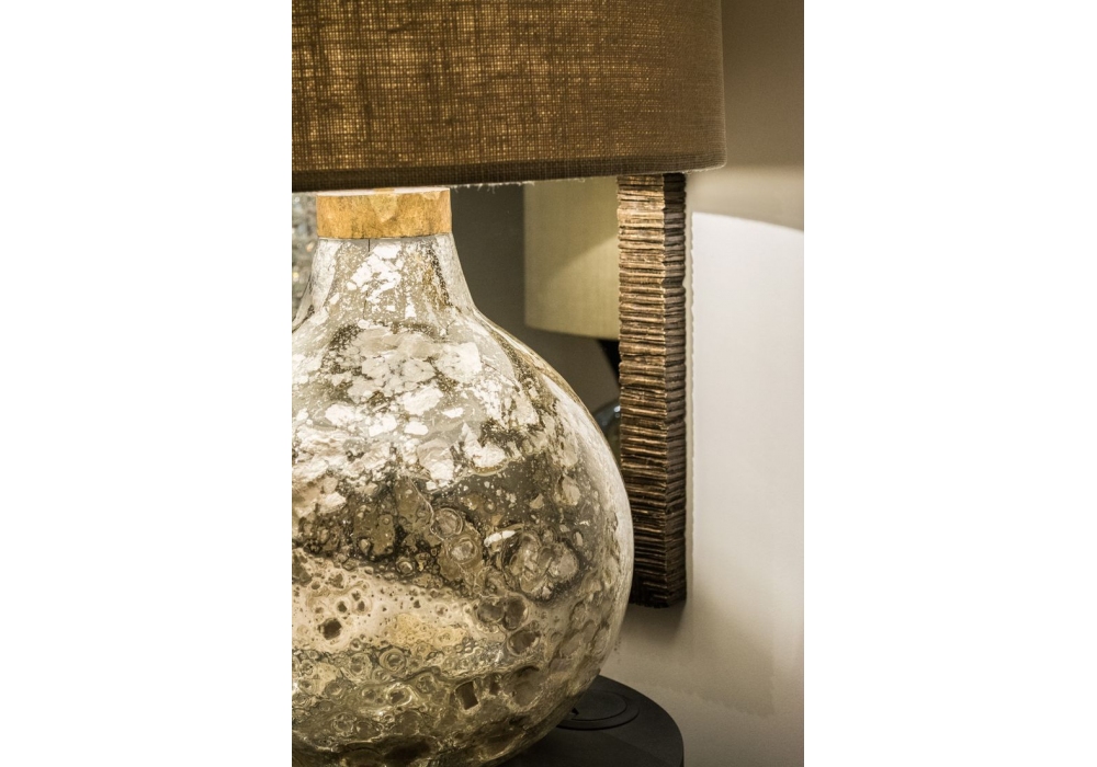 Big Bang designed and produced by Porta Romana is a structured table lamp in Jesmonite and bronze. The lampshade is in fabric and screens a light source with an E27 socket of the LED type powered by a textile fiber cable. Big Bang is available in different finishes for each single element.