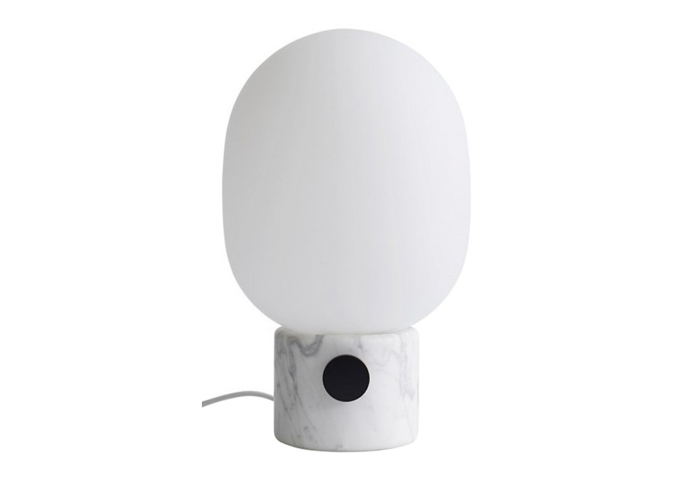 JWDA Marble designed by Jonas Wagell for Audo Copenhagen is a table lamp with base in glossy Carrara marble or purple calacatta, glass diffuser.